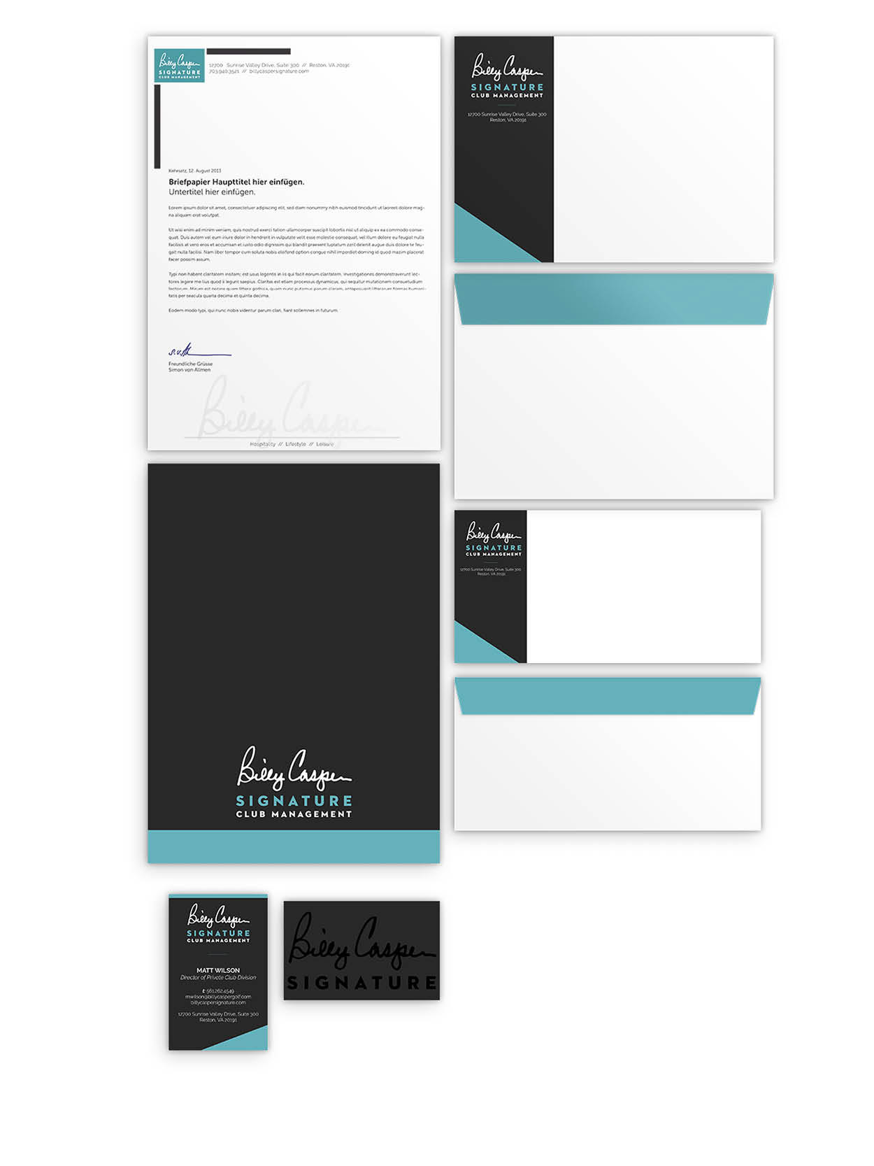 This brand is continually evolving as more clients onboard to this service. This particular service provided by Bill Casper Golf is for private clubs and courses, so the feeling of luxury and expense has to be conveyed through all the pieces.
